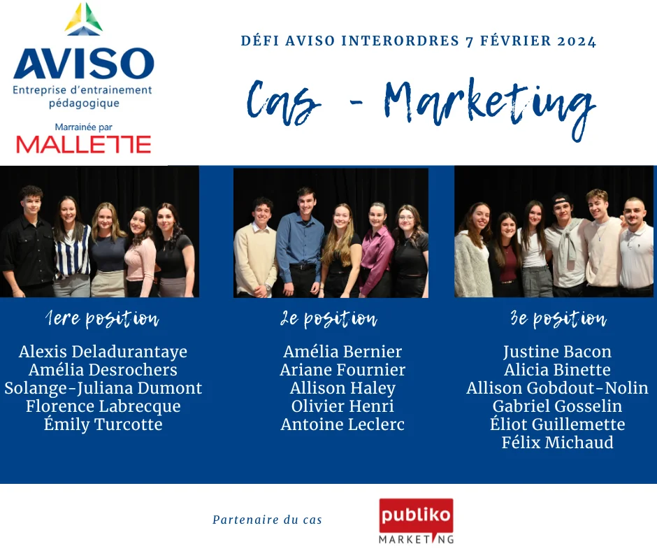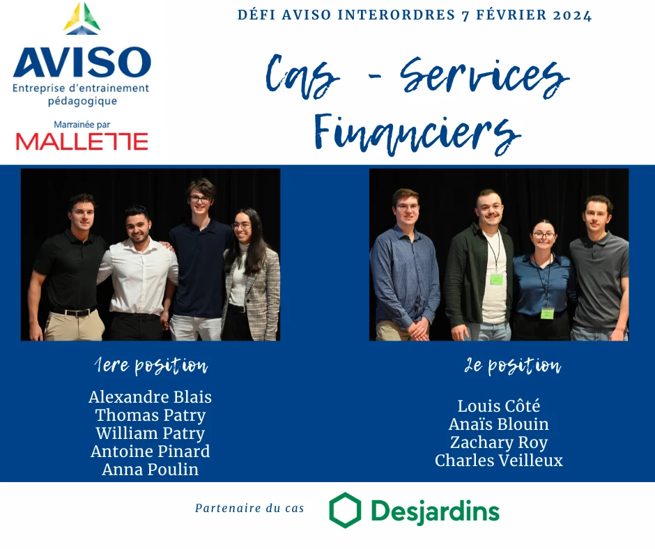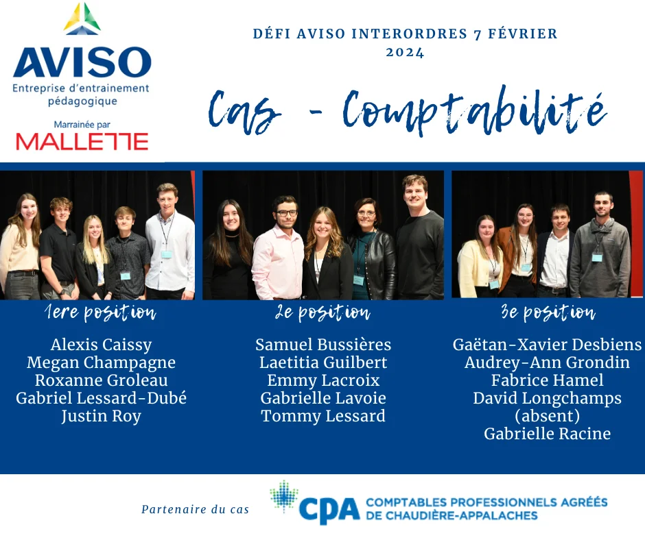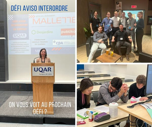 Le Défi Aviso Interordres, organisé par l’Unité départementale de sciences de la gestion du campus de Lévis de l’UQAR, est une compétition académique annuelle qui en est à sa troisième édition en 2024. Cette compétition amicale rassemble des équipes d’étudiantes et d’étudiants collégiaux et universitaires pour résoudre des cas fictifs dans trois domaines : la comptabilité, les services financiers et le marketing.